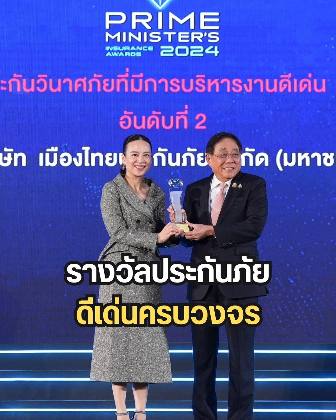 ”มาดามแป้ง“ นวลพรรณ ล่ำซำ นายกสมาคมกีฬาฟุตบอลแห่งประเทศไทยฯ เข้ารับรางวัล ”บริษัทประกันวินาศภัยที่มีการบริหารงานดีเด่น อันดับ 2 ประจำปี 2566“ จากนายพิชัย ชุณหวชิร รองนายกรัฐมนตรี และรัฐมนตรีว่าการกระทรวงการคลัง ในงานมอบรางวัลประกันภัยดีเด่นครบวงจร(Prime minister’s Insurance Awards 2024) จัดขึ้นโดย สำนักงานคณะกรรมการกำกับและส่งเสริมการประกอบธุรกิจประกันภัย(คปภ.) ที่โรงแรมเซ็นทาราแกรนด์ เซ็นทรัลเวิลด์ เมื่อวันที่ 22 ต.ค. 2567