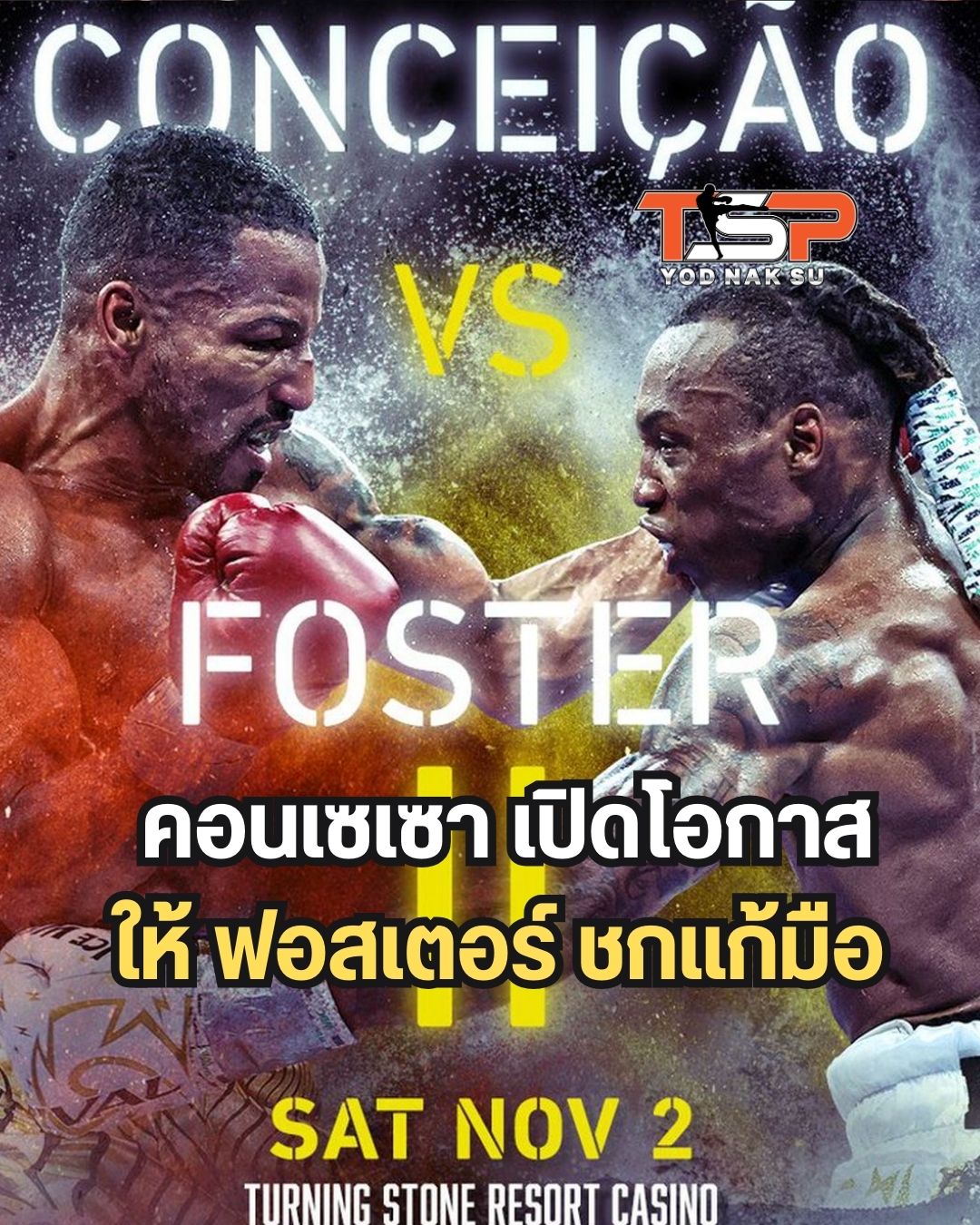 ร็อบสัน คอนเซเซา (19-2-1, 9 KO) แชมป์โลกซูเปอร์เฟเธอร์เวต WBC ชาวบราซิล เปิดโอกาสให้ โอชากุย ฟอสเตอร์ (22-3-0, 12 KO) อดีตแชมป์โลกชาวอเมริกันชกแก้มือ ในวันเสาร์ที่ 2 พฤศจิกายน 2024 นี้ ที่ เทิร์นนิ่ง สโตน รีสอร์ต แอนด์ กาสิโน, เวโรนา, นิวยอร์ก, สหรัฐอเมริกา