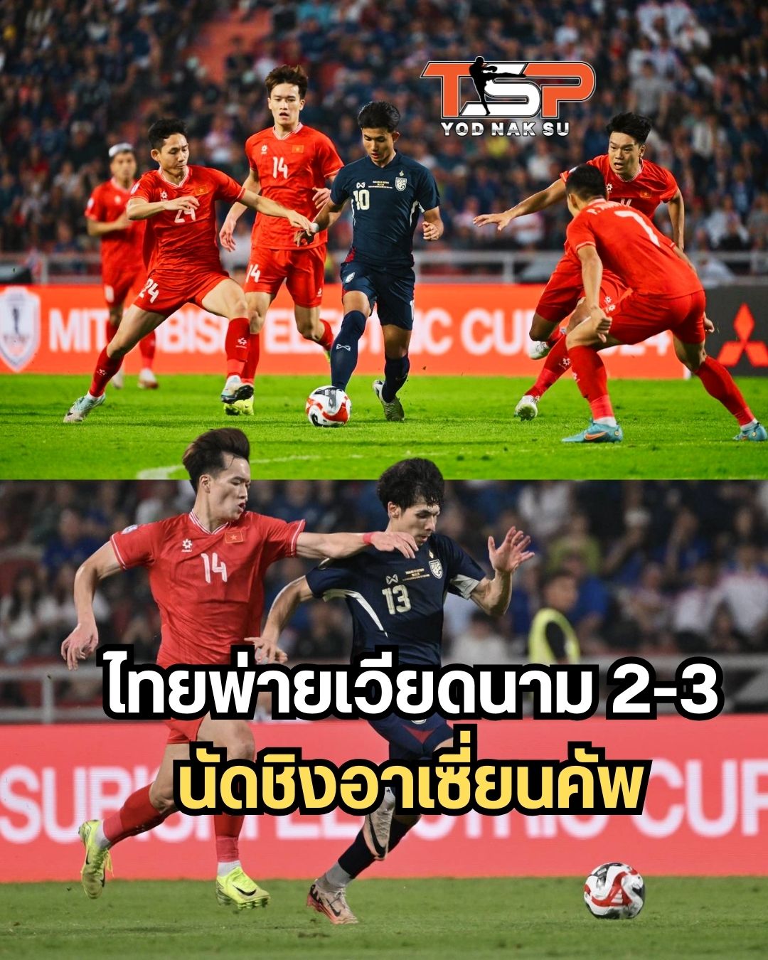 ไทยช็อก! เหลือ10คนพ่ายเวียดนาม 2-3 พลาดแชมป์คาราชมังนัดชิงอาเซี่ยนคัพ เมื่อวันที่ 5 มกราคม 2568 เวลา 20.00 น. ที่สนามราชมังคลากีฬาสถาน ทีมชาติไทยได้พบกับทีมชาติเวียดนามในศึกฟุตบอลชิงแชมป์อาเซียน 2024 หรือ ASEAN Mitsubishi Electric Cup 2024 รอบชิงชนะเลิศ นัดที่สอง ซึ่งจากการแข่งขันนัดแรก ที่สนามเวียด จี๋ สเตเดียม เวียดนามสามารถเปิดบ้านเอาชนะไทยไปได้ด้วยสกอร์ 2-1 ซึ่งทำให้ไทยต้องพยายามอย่างหนักในนัดที่สองนี้เพื่อพลิกสถานการณ์